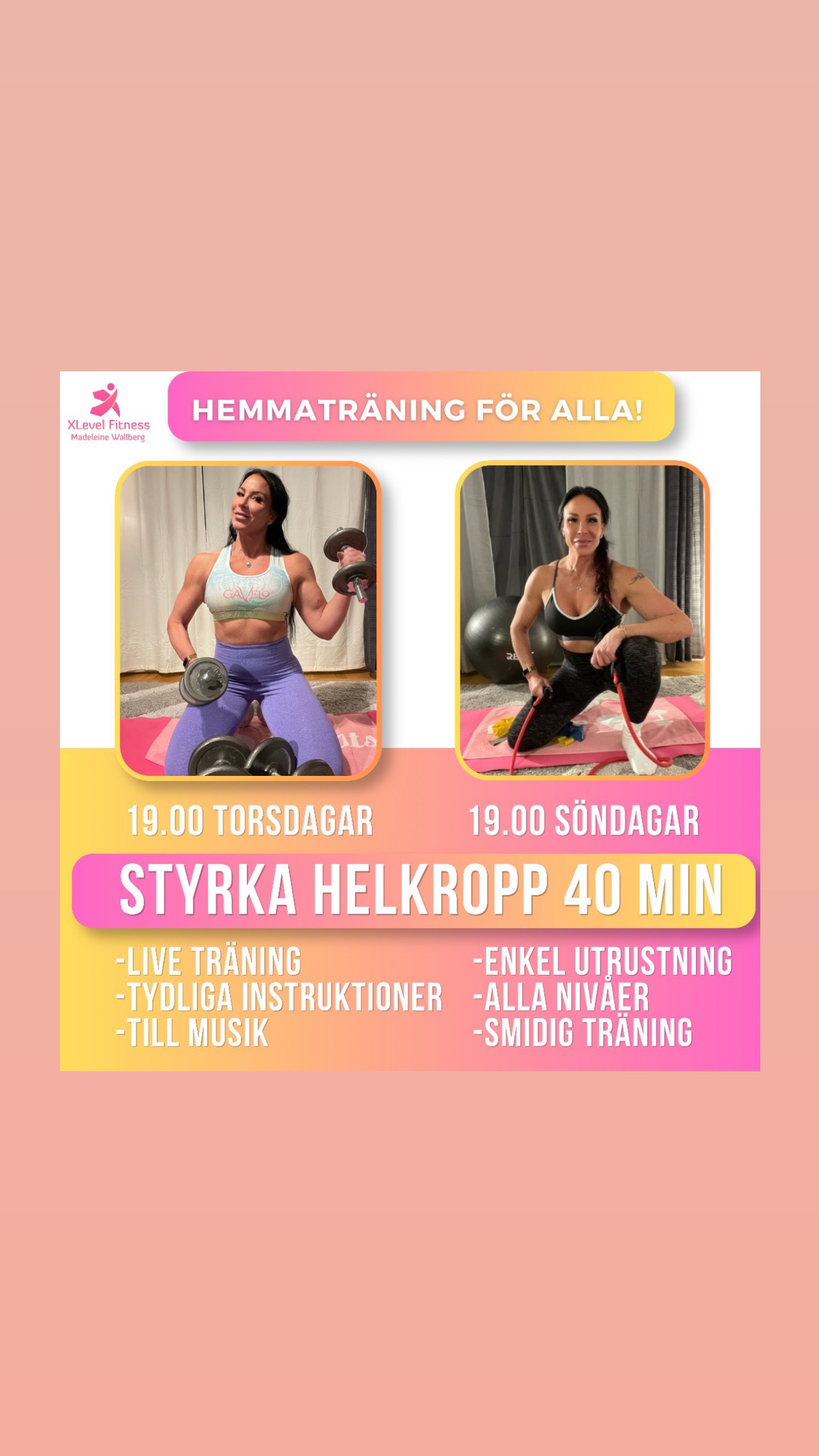 Hemmaträning LIVE Helkropp styrka 40 min torsdagar kl 19.00