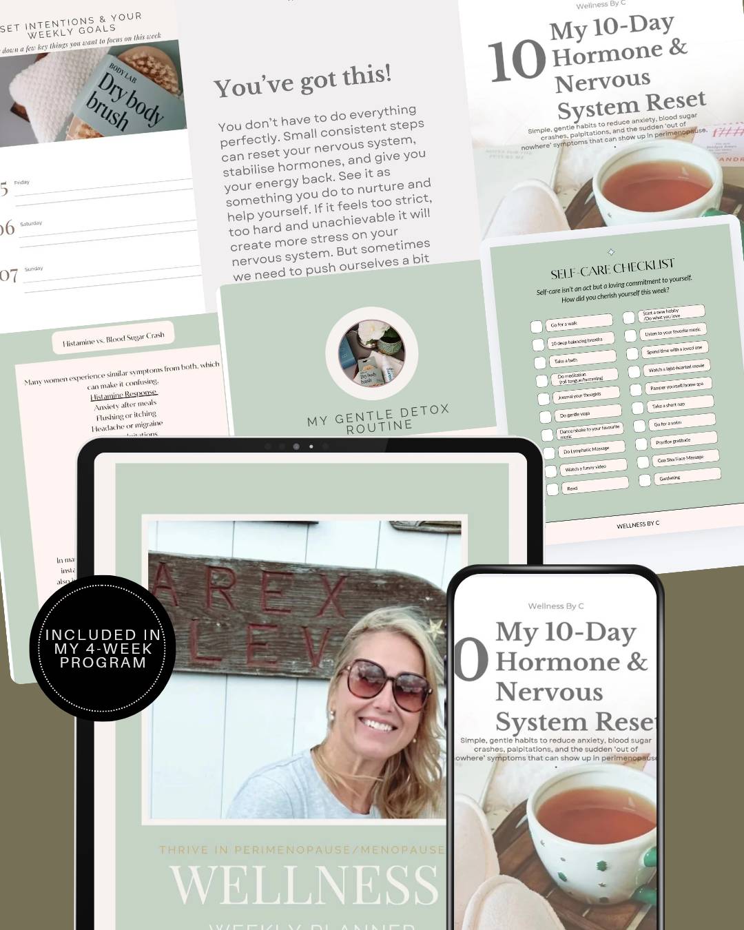 Reset • Regulate • Rebuild A 4-week program focused on calming the nervous system, supporting hormones, stabilising energy, and creating sustainable routines. Inside the program you’ll find: • guided weekly themes • a wellness planner pdf with meal plans, self-care checklists, liver support guide, gentle detox guide for sensitive systems, histamine flare-up checklist and more • a 10-day hormone & nervous system reset pdf • two live Zoom sessions • a private Facebook group for support Think of it as your gentle reset - small steps to help you build a great foundation for wellness in perimenopause/menopause. 🌸 4 Weeks of Guided Themes Each week focuses on a key pillar of healing: * Week 1: Nervous system regulation & blood sugar support * Week 2: Hormones & liver support * Week 3: Lymph, detox & mindset/future self vision * Week 4: Integration, boundaries & sustainable routines These themes are here to guide you, not to limit you. You may find that practices overlap across weeks. 🌸 Wellness Planner A supportive planner to help you: • track daily practices • reflect on energy and emotions • build gentle routines • stay connected to your body 🌸 10-Day Hormone & Nervous System Reset A flexible reset you can return to whenever you need extra support. This includes simple daily practices designed to help stabilise your nervous system and energy. 🌸 Two Live Zoom Sessions We will meet live to: • go deeper into the program themes • practice nervous system regulation together, lymphatic flow practices, hormone supporting practices • answer questions • support each other Replays will be available. 🌸 Private Facebook Community A supportive space where participants can: • ask questions • share experiences • receive encouragement • connect with others on a similar journey We are doing this together 🩷 Why I Created This I designed this wellness program because I know firsthand how overwhelming it can feel to juggle hormones, energy dips, nervous system ups-and-downs, blood sugar crashes and all the daily responsibilities that come with this stage of life. I wanted to create a space that feels both structured and supportive, somewhere you don’t have to figure it all out alone. This isn’t about quick fixes. It’s about building small, sustainable resets that bring you more calm, energy, and strength, inside and out. What to Expect You’ll receive tools like this Weekly Wellness Planner to keep things simple, doable, and encouraging. Think of it as your gentle reset - small steps to help you build a great foundation for wellness in perimenopause/menopause. This will be a Founding Round with a small group and a special introductory price. First live online class via Zoom starts: Sunday 26th April (24 hour replay option available) 20:00 Stockholm (CEST) 19:00 UK (BST) US 14:00 ET | 13:00 CT | 12:00 MT | 11:00 PT
