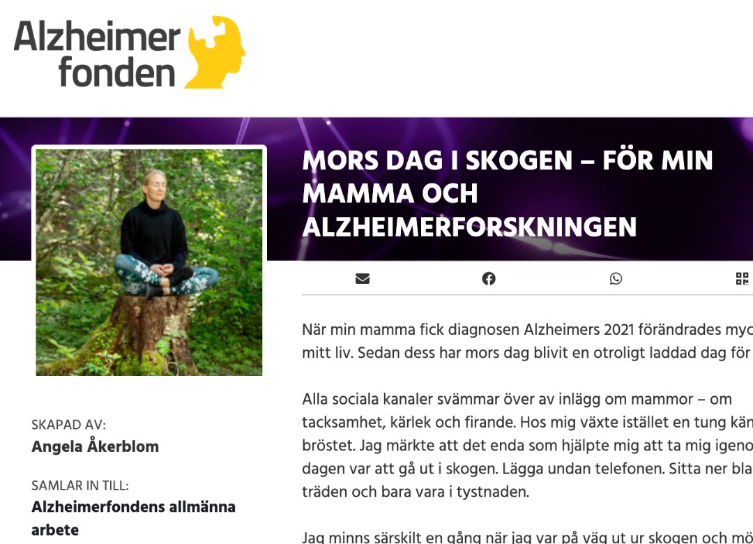 🌿 MORS DAG I SKOGEN – TRÄNA UTE & SKOGSBAD Till förmån för Alzheimerfonden På mors dag håller jag två pass i skogen där du är varmt välkommen att delta på båda eller ett av dem – samtidigt som du bidrar till min insamling till Alzheimerfonden. ──────────── 🏃♀️ KL 10–11 – TRÄNA UTE Ett träningspass i skogen som utmanar din styrka, rörlighet, balans och flås. Denna dag kommer passet ha lite extra fokus på styrka. Ta gärna med ett liggunderlag för övningar på marken. ──────────── 🌲 KL 11:30–13 – SKOGSBAD Häng med ut och bada dina sinnen i skogens atmosfär. Vi går en väldigt lugn promenad där vi väcker våra sinnen och tar in naturen omkring oss. Under passet stannar vi också till för stillhet och återhämtning. Ta med något att sitta eller ligga på. Det kan bli lite kyligt när vi stannar, så ta gärna med en extra tröja och kanske till och med en filt. 🍪 Är du med på båda passen bjuder jag på en hembakad energibar. ──────────── 💛 DELTAGANDE & INSAMLING Det är gratis att delta. Allt jag önskar är att du swishar en valfri gåva till min insamling hos Alzheimerfonden (https://insamling.alzheimerfonden.se/fundraisers/mors-dag-i-skogen-for-min-mamma-och-alzheimerforskningen). Du kan välja att vara med på ett av passen eller båda. 📍 Vi möts vid Källbrinks IP. Mer praktisk information skickas efter bokning. Avbokning är fri fram till passets start. Alla deltagare behöver boka en egen plats. Vill du till exempel ta med din mamma behöver hon också boka sin plats. ──────────── 💛 VARFÖR JAG GÖR DETTA När min mamma fick diagnosen Alzheimers 2021 förändrades mors dag för mig. Det som tidigare var en dag av firande blev istället en dag fylld av starka känslor. För att ta mig igenom dagen började jag söka mig ut i skogen – till tystnaden, lugnet och naturen. 2025 bestämde jag mig för att göra något annat av dagen. Istället för att låta den vara tung valde jag att fylla den med det som får mig att må bra: att vara utomhus, i skogen och tillsammans med andra. Därför började jag hålla dessa pass på mors dag och låta alla intäkter gå till Alzheimerfonden. För mig har det blivit ett fint sätt att göra dagen meningsfull – och samtidigt bidra till den viktiga forskningen kring Alzheimers sjukdom. ──────────── 📩 NYHETSBREV Genom att anmäla dig till detta pass godkänner du också att få mitt nyhetsbrev via e-post. Där delar jag inspiration, träning och kommande aktiviteter. Du kan när som helst avprenumerera via en länk i utskicken.