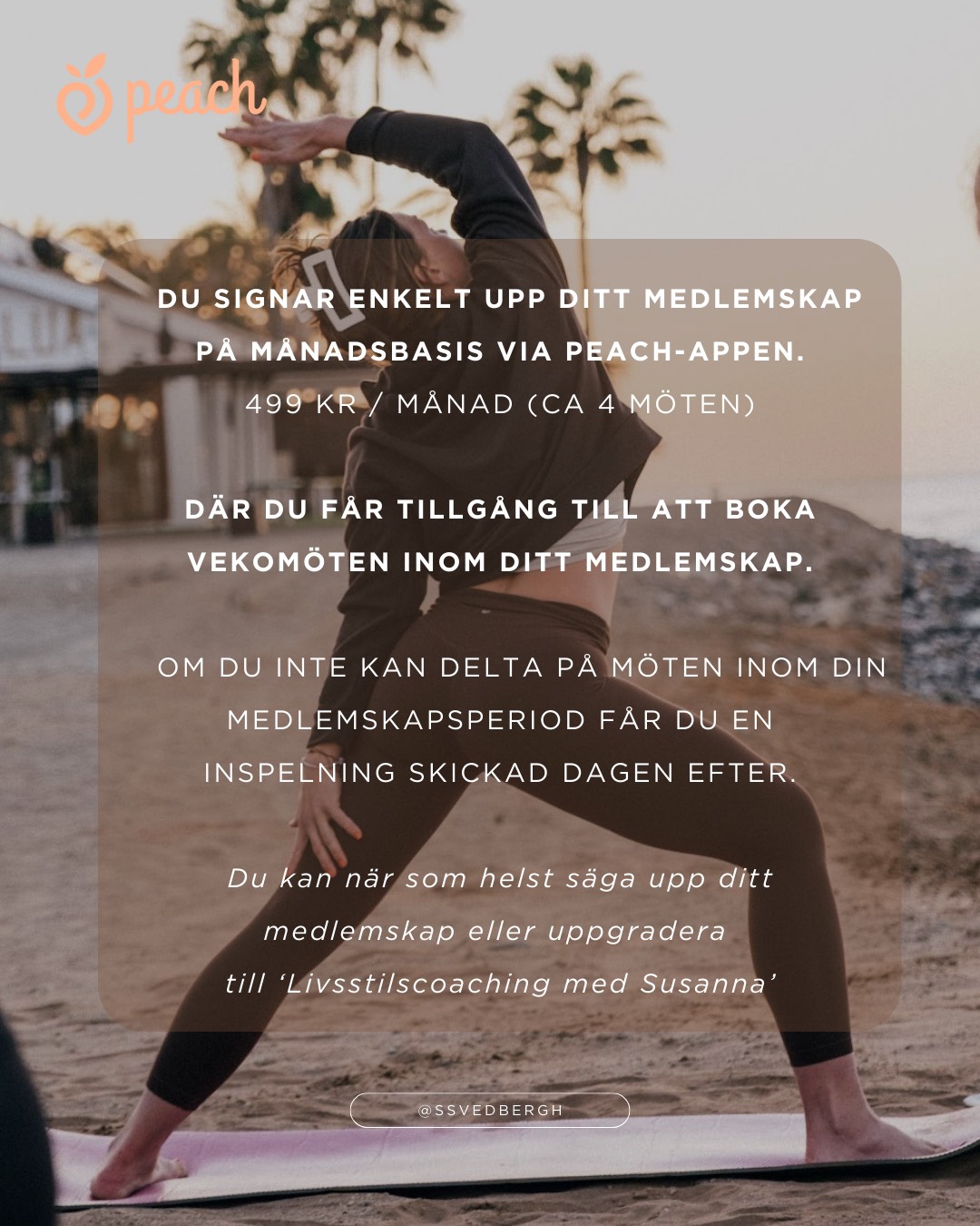 Vill du skapa mer struktur, självinsikt och hållbara vanor i din vardag – utan att pressa dig själv? Längtar du efter ett sammanhang där personlig utveckling får vara både mänsklig, strukturerad och hållbar – då är du varmt välkommen att vara med på mina coachingträffar varje söndag 🤍 Under 2026 håller jag veckomöten för personlig utveckling där vi jobbar med små, konkreta vanor och reflektioner som bygger förändring över tid. Fokus ligger både på det mentala och det praktiska – med utrymme för samtal, insikter och verkliga erfarenheter från vardagen. ✨ Varje månad har ett tydligt tema ✨ Varje vecka jobbar vi med 1 vana + 1 reflektion ✨ På mötena följer vi upp tillsammans, både vinster och utmaningar Kommande teman: 🌿 Februari – Självomsorg & gränser (v5-8) 🌱 Mars – Nystart & mod (v9-13) 🌸 April – Självuttryck & autenticitet (v14-17) BOKA PLATS Gratis prova på: boka en första kostnadsfri plats för att ta del av ett möte och känna in känslan Medlemskap: Investera i ett medlemskap för att kunna boka plats på mötet varje vecka under en och samma månad. Du går med via medlemskap i Peach-appen för 499 kr/månad – utan bindningstid (du kan säga upp när du vill). Vill du höra mer om upplägget, hur mötena går till och om det här passar dig? 👉 Se videon i inlägget. Hoppas du ska vilja vara med och utvecklas tillsammans under 2026! En vana, en reflektion, en vecka i taget ✨