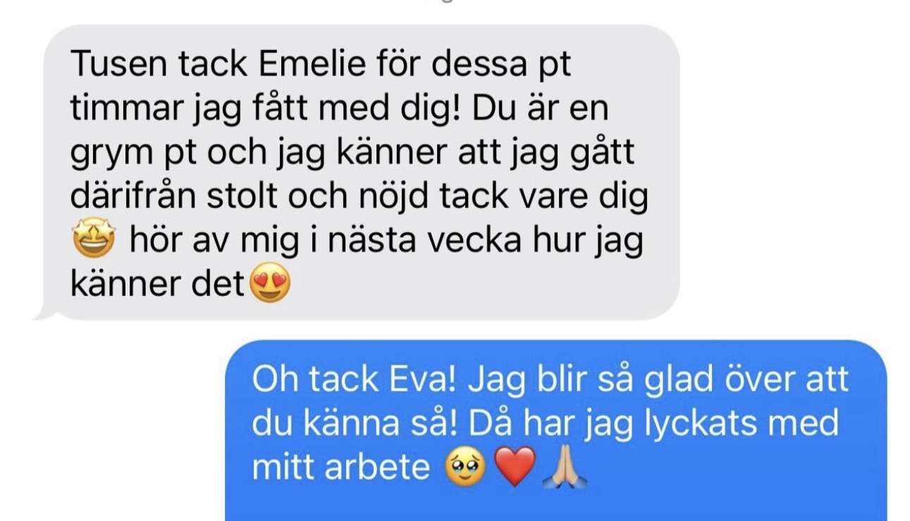 1 klipp, 60 min. Hej och varmt välkommen till CIEL 🤍 Här bokar du tid för personlig träning (du som köpt PT klippkort - använd dessa för att kostnaden ska försvinna) Denna bokas även som introduktionsmöte hos mig för att lära känna varandra, ta reda på mer om vad jag kan hjälpa dig med och hur vi ska arbeta framåt. Väljer du att köpa PT paket får du en rabattkod med rabatt på 850kr som kan dras av på första köpet! ✨ TÄNK PÅ ✔️ ◾️Avbokning gäller minst 12h innan, viktigt att detta görs i appen om du behöver avboka. ◾️ Känner du dig sjuk, avboka hellre så hittar vi en ny tid ✔️ ◾️Du får en rabattkod att använda för att dra av 850kr ifrån testtillfället - tänk på att denna måste användas innan - efter köp är det ej möjligt att dra av kostnaden ✔️ ◾️Förbered dig gärna innan med vad jag kan hjälpa dig med, vad du har för ambitioner och vad du önskar jag ska hjälpa dig med, samt hur ofta du skulle vilja träna i veckan ✔️ ◾️På vårt testtillfälle kommer vi enbart att ha samtal för att lära känna varandra, vilket innebär att du inte behöver komma ombytt till träningskläder om du inte vill ✔️ (perfekt om du kommer direkt ifrån arbete eller likande) Mejla gärna mig på: emelie@ehmpowerment.se om du har frågor! Tack på förhand, jag ser fram emot att träffa dig! Med vänlig hälsning Emelie