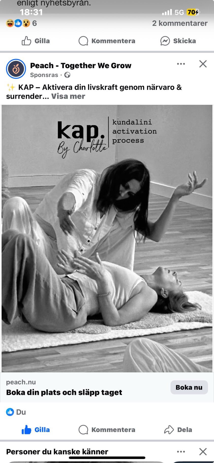 🐍✨KAP – Aktivera din livskraft genom närvaro & surrender ✨ Vad är KAP? KAP (Kundalini Activation Process) är en mjuk men kraftfull energitransmission som väcker din inneboende livskraft. Denna energi (kundalini, chi eller prana) flödar fritt hos barn men kan blockeras när vi växer upp. KAP rensar stillastående energi, frigör undertryckta känslor och hjälper dig att återknyta till ditt inre jag – allt genom surrender. Till skillnad från metoder som kräver viljestyrka (yoga, breathwork, tantra) sker KAP helt naturligt. Du behöver bara vara närvarande och öppen. Energins flöde sker precis som din kropp är redo för, och du tar endast emot det din kropp kan hantera. Detta gör KAP tryggt, mjukt och djupt transformerande. 🌿 För vem? KAP passar alla som: • Vill utforska personlig utveckling på djupet • Känner sig fast, energilös eller överväldigad • Är nyfikna på något nytt och transformativt • Vill stärka intuition, kreativitet och kontakt med livet 💖 Varför KAP? Efter KAP kan du uppleva: • Klarhet, inre lugn och frid ✨ • Frigörande av gamla mönster: sorg, ilska, rädsla eller undertryckt glädje 💜 • Stärkt intuition och vägledning 💫 • Mer energi, vitalitet och närvaro 🔥 • Ökad självkärlek, självförtroende och kontakt med ditt inre 🥰 • Djupare känsla av mening, bliss och harmoni med ditt sanna jag 🌸 Vad händer under en session? • Du ligger på matta med slutna ögon medan utvald musik spelas 🎵 • Jag faciliterar energin med mjuka beröringar vid chakran och meridianer • Kroppen stämmer naturligt in på energin, rör sig, skakar, sträcker sig eller är stilla • Upplevelser kan vara: • Djup avslappning eller bliss 🌸 • Pirrande energi, värme eller kyla • Spontana rörelser eller yoga-liknande poser 🧘♀️ • Känslomässig frigörelse: tårar, skratt, stön, sjungande • Visioner av ljus, färger eller insikter ✨ • Kontakt med ditt högre jag och utökad medvetenhet Programma 📋 Backgrund, introduktion 10 min Demo 5 min Kort meditation 5 min Musik och överföring av energi & non dual consciousness 70 min Fika, ev delning, råd om integration och grounding 15-30 minuter 💡 Vad kan hända efter en session? KAP påverkar alla aspekter av livet. Många upplever: • Förbättrad klarhet och beslutsförmåga • Starkare intuition och perception • Djupare kontakt med sig själv och andra • Emotionell frihet och mindre grubblande • Mer glädje, energi och livslust • Livsval som bättre stämmer överens med hälsa, syfte och välmående ⏰ Inför sessionen: • Bekväma kläder 👕 • Lätt eller ingen mat/ kaffe 3 timmar innan, drick mycket vatten, 💧 • Undvik alkohol eller droger 24 timmar före ⛔ • Håll ögonen stängda; ögonmask kan hjälpa 😴 • Yogamatta finns på plats, men du kan ta med egen • Kom 15 minuter innan för att landa 🕊️ ⚠️ Ej lämplig för: Personer med hjärtproblem, epilepsi, schizofreni, psykos eller graviditet över 6 månader. Vid neurologiska eller psykiska obalanser, kontakta mig. Min ålder 18 år. 📩 Privata eller gruppsessioner: För mer privat upplevelse erbjuder jag privata, duo- eller smågruppssessioner, eller om du har frågor: Kontakta mig via Instagram @kapbycharlotte 💜🐍