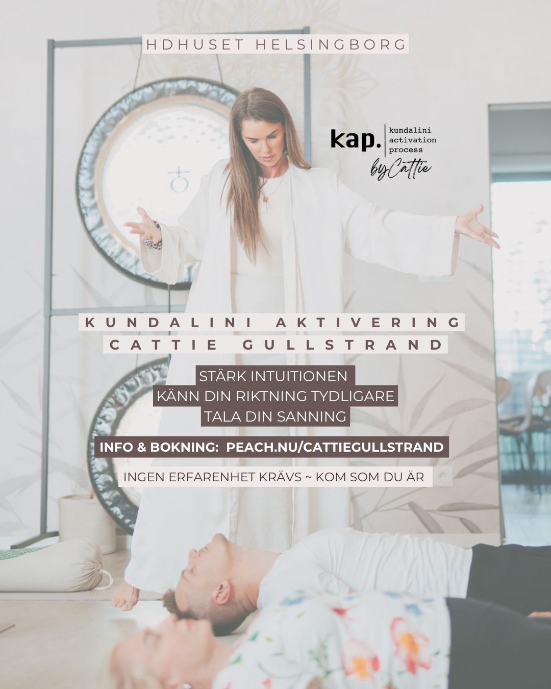 KAP ~ kundalini activation process ~ Hörsalen HDhuset, Vasatorpsvägen 1F 25457 Helsingborg ~ parkering finns även vid matvarubutiken Citygross. 120 min totalt varav 60 min på mattan. • Yogamatta finns på plats men ta med en egen om du vill ligga på dubbla~ likaså ta med en gosig filt och kofta ~ energin kan göra att du känner dig väldigt frusen. ***** Ingen tidigare erfarenhet krävs. Kom som du är ♥️ När jag håller space önskar jag förmedla en mjuk, trygg och naturlig energiöverföring av kundalini ( livskraft ) och non-duality ( högre medvetande tillstånd, oneness ) Som facilitator är jag ett verktyg / en kanal för energin och aktiverar din egen inre medfödda livskraft. Den syns tydligt hos djur och barn ~ de lever i sin fulla kraft och uttrycker sina känslor. Genom att slappna av och släppa taget, sänka din gard, kan energin få flöda fritt dit den ska. I förlängningen kan det leda till ett skl. kundalini awakening. KAP är inget farligt och det är inget som tar över dig eller ditt medvetande. KAP skiljer sig från andra kundalini praktiker ex breathwork och kundalini yoga ~ där man med egen viljekraft genererar energin . I KAP överförs energin via kronchackrat, frigör blockeringar och stagnationer, tills den slutligen når rotchackrat och kan flöda fritt däremellan. Under sessionen ligger du på en yoga matta med slutna ögon. Hög musik spelas samtidigt som facilitatorn aktiverar energin genom beröring av olika chackra och meridianpunkter på din kropp. Spontana rörelser, pirrande fingrar, stela armar, ryckningar eller känsloreleases så som skrik skratt och gråt är vanligt. Det är kroppens naturliga reaktioner och de behöver få komma upp till ytan. Andra sensationer kan vara att man ser bilder, färger, får visioner, känner en värme eller kyla i kroppen. Man kan även bli tung och kall , uppleva bliss , eller bara vila i ett tillstånd av non-duality. Som i dvala. Allt man behöver göra är att låta allt som vill komma upp få komma. Många upplever att det är en frigörande, renande och läkande process. KAP stärker intuitionen, tar dig närmare ditt hjärta och din true essence. Djupare insikter och en rikare syn på livet är något många upplever om de går på KAP regelbundet. Även om det som händer på mattan är väldigt härligt och frigörande, så är det vad som händer i livet utanför sessionerna som är det viktiga. FÖRBEREDELSER INFÖR EN KLASS • Ät lätt under dagen och senast 3 timmar innan en klass. •Undvik kaffe och koffein. •Undvik alkohol och droger •Bär bekväma mjuka kläder. Yogamattor finns på plats •Kom med ett öppet sinne •Drick mycket vatten under dagen men även efter klassen, då energin är väldigt utrensande. • Insläpp sker 15 min innan klassen och i korridoren intill salen ber jag om stillhet och tystnad. Likaså att beakta inre frid efteråt ~ OBS! Ej lämplig för- Dig som är under 18 år Dig som har epilepsi Dig som är gravid i 3:e trimestern Dig som är påverkad av droger eller alkohol. ~ Återbetalas ej. Bokad plats kan däremot bytas mot annat tillfälle i mån av plats, inom 3 månader ~ Bokningar är bindande och återbetalas inte.