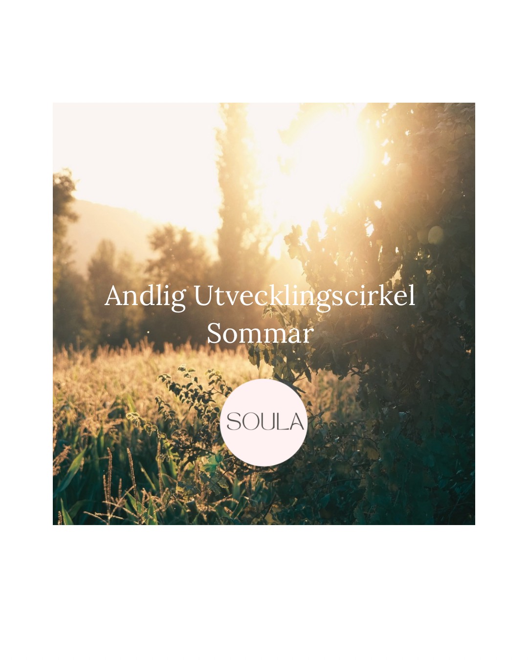 6 veckor av andlig utveckling i sommar! Vi ses under 1 1/2 timme varje gång då vi mediterar och gör övningar tillsammans. Du kan delta oavsett förkunskaper. Vid varje träff tittar vi närmare på ett tema inom den andliga världen, gör intuitiva och mediala övningar och samtalar i avslappnad och prestigelös anda. Boka och betala endast för de tillfällen du deltar. Karolina Kaplan är en erfaren andlig lärare, Medium och Reiki Master. Läs mer på www.soula.se Vi kör vid minst två bokade deltagare. Vid färre än två bokade ställs det aktuella tillfället in.